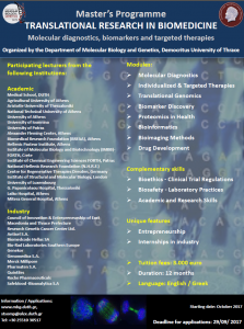 Προκήρυξη Προγράμματος Μεταπτυχιακών Σπουδών:  «ΜΕΤΑΦΡΑΣΤΙΚΗ ΕΡΕΥΝΑ ΣΤΗN BIOIΑΤΡΙΚΗ» Μοριακή Διαγνωστική, Βιοδείκτες και Στοχευμένες Θεραπείες του Τμήματος Μοριακής Βιολογίας και Γενετικής του Δημοκρίτειου Πανεπιστημίου Θράκης για το Ακαδημαϊκό έτος 2017-18.