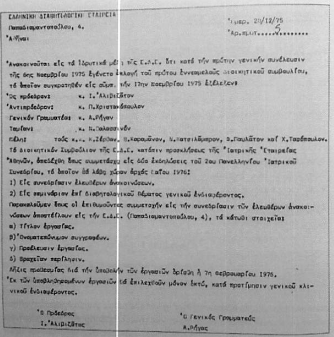 Ιδρυτικά Μέλη της Ελληνικής Διαβητολογικής Εταιρείας (ΕΔΕ) 1975