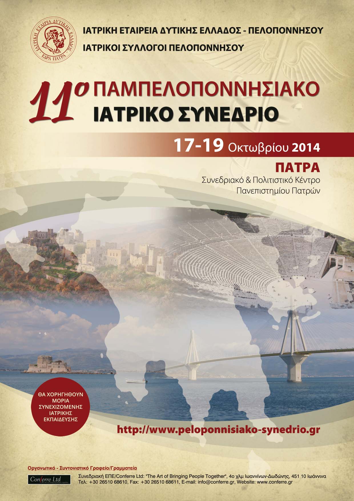 Tο 11ο Παμπελοποννησιακό Ιατρικό Συνέδριο θα πραγματοποιηθεί στο Συνεδριακό Κέντρο του Πανεπιστημίου Πατρών, από 17-19 Οκτωβρίου 2014.