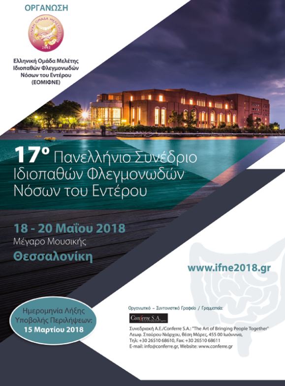 Αρχή / Επιστημονικές Εκδηλώσεις / 17ο Πανελλήνιο Συνέδριο Ιδιοπαθών Φλεγμονοδών Νόσων του Εντέρου (Θεσσαλονίκη, 18-20 Μαϊου 2018)