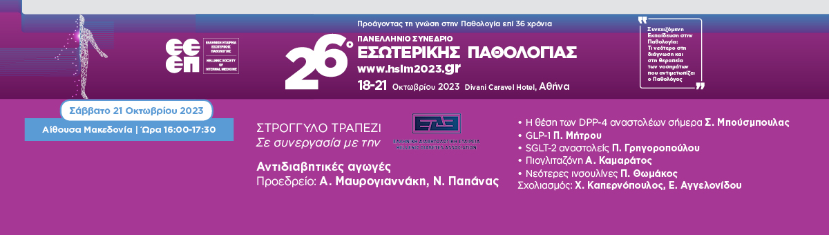 Αρχή / Εκδήλωσης / Κοινή Συνεδρίαση ΕΕΕΠ-ΕΔΕ στο πλαίσιο του 26ου Πανελληνίου Συνεδρίου Εσωτερικής Παθολογίας (Σάββατο 21/10/2023)