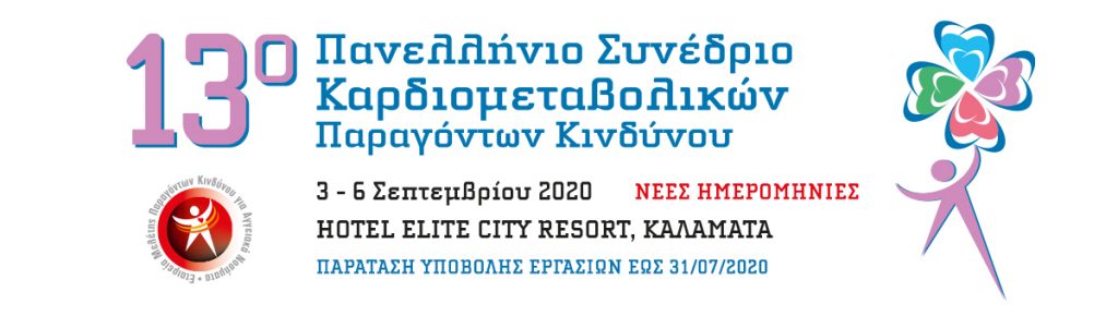 Η Εταιρεία Μελέτης Παραγόντων Κινδύνου για Αγγειακά Νοσήματα (Ε.Μ.Πα.Κ.Α.Ν.) διοργανώνει το 13ο Πανελλήνιο Συνέδριο Καρδιομεταβολικών Παραγόντων Κινδύνου, 3-6 Σεπτεμβρίου 2020 στο ξενοδοχείο Elite στην Καλαμάτα, στο οποίο φιλοδοξεί με τη διεξαγωγή των εργασιών του να παρέχει ό,τι νεότερο σε ένα ευρύ πεδίο θεμάτων σχετικών με τους Καρδιομεταβολικούς παράγοντες κινδύνου, με έμφαση στην τεκμηριωμένη γνώση και στην συνεπαγόμενη ορθή κλινική πράξη.