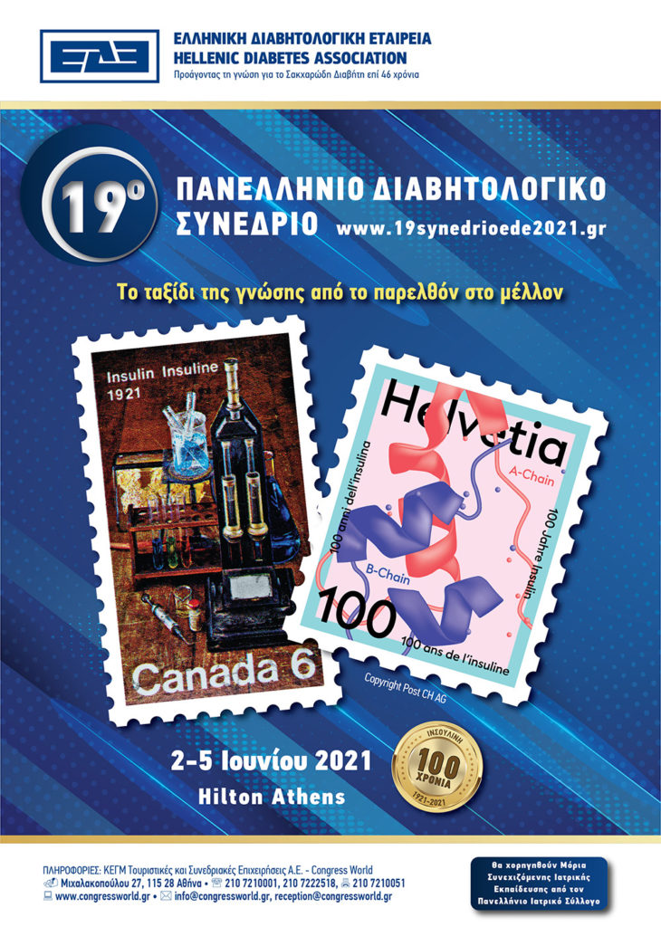 Η Ελληνική Διαβητολογική Εταιρεία οργανώνει και με χαρά σας προσκαλεί στο 19ο ΠΑΝΕΛΛΗΝΙΟ ΔΙΑΒΗΤΟΛΟΓΙΚΟ ΣΥΝΕΔΡΙΟ το οποίο θα διεξαχθεί στο Ξενοδοχείο HILTON της Αθήνας από Τετάρτη 2 έως και Σάββατο 5 Ιουνίου 2021.