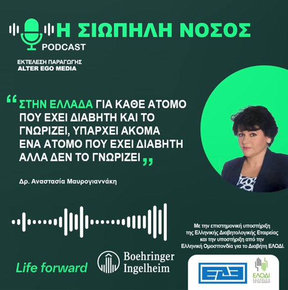 Συντονιστείτε στο 2ο επεισόδιο του Podcast “Η Σιωπηλή Νόσος” με τον δημοσιογράφο υγείας Μιχάλη Κεφαλογιάννη σε μια ενδιαφέρουσα συζήτηση με τη Δρ. Αναστασία Μαυρογιαννάκη, πρόεδρο της Ελληνικής Διαβητολογικής Εταιρείας και τον κ. Αναστάσιο Λασκαράτο, πρόεδρο του Συλλόγου ατόμων με διαβήτη Κεφαλονιάς – Ιθάκης, με θέμα: “Η ζωή μου με το Διαβήτη τύπου 2“.